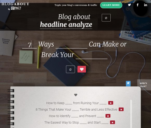 - Great tool to use if working on multiple platforms. For example, LinkedIn may do better with a Brand or Product headline. YouTube should go well with an educational blog.